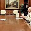 India Today Group Editorial Director Raj Chengappa in conversation with Prime Minister Narendra Modi at the Prime Minister's Office.