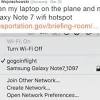 Virgin flight delayed after wi-fi device named after 'Samsung Galaxy Note 7' A Virgin America flight almost had to be diverted after a prankster passenger changed the name of their cellphone's WiFi hotspot to 'Samsung Galaxy Note 7'.